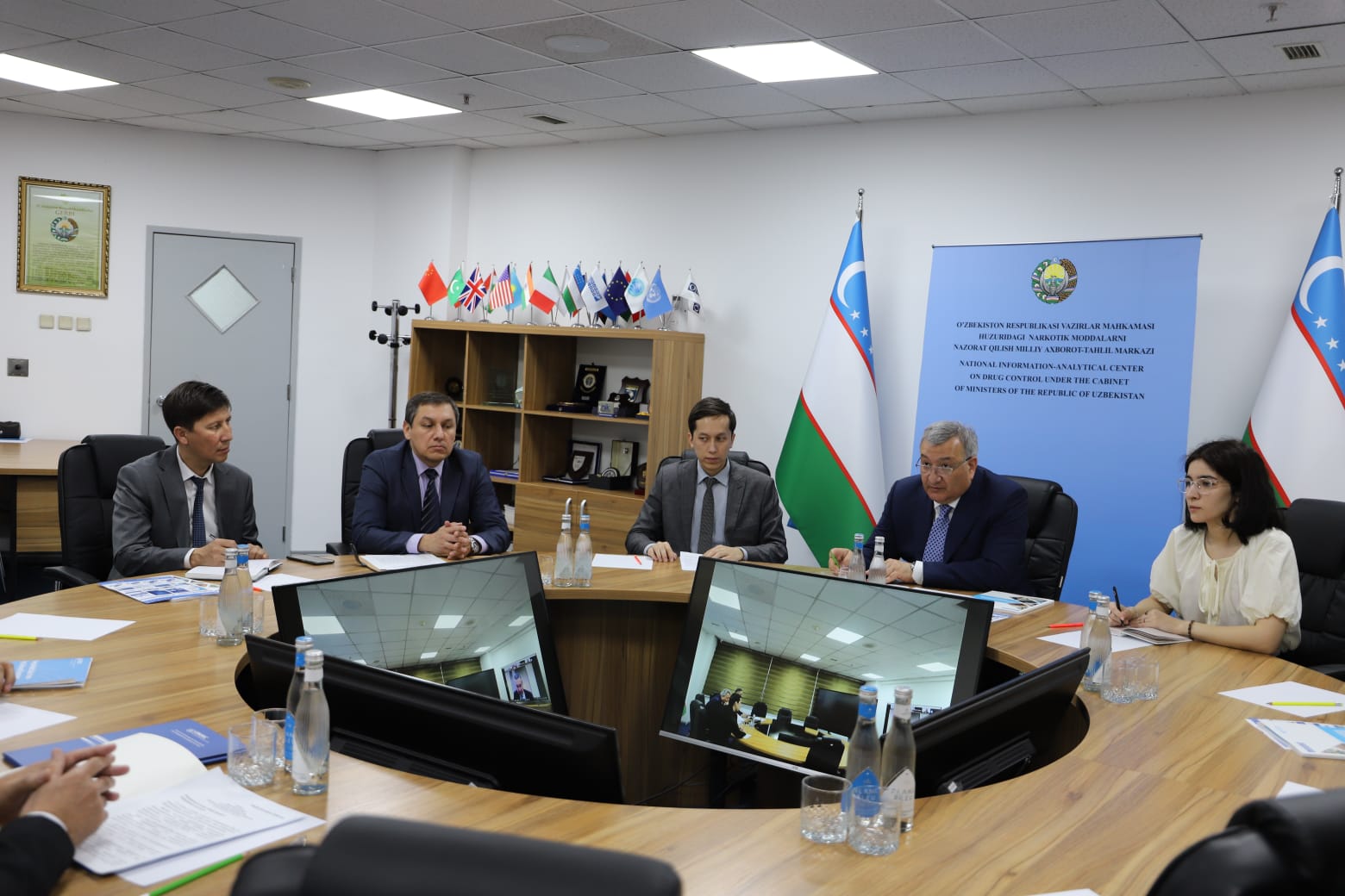 Mr. A. Yazliyev, CARICC Director, met with Mr. O. Narzullaev, Director of the National Information-Analytical Center for Drug Control, and management of competent authorities of Uzbekistan in Tashkent on 1 June 2023.