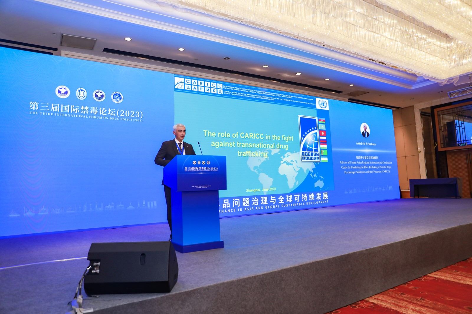 Upon invitation of the International Center for Drug Policy Studies at Shanghai University, CARICC delegation headed by Director Mr. A. Yazliyev took part in the Third International Forum on Drug Policy on 6-8 June 2023 in Shanghai.