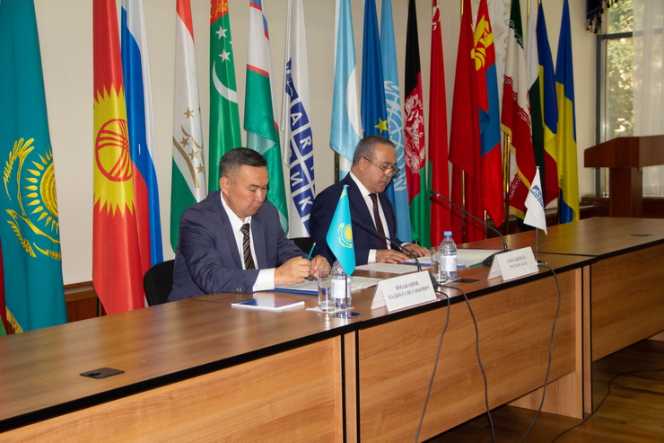 On June 24, 2022, on the basis of the Interdepartmental Center for Training Specialists in Combating Drug Crime of the Almaty Academy of the Ministry of Internal Affairs of the Republic of Kazakhstan, the delegation of the Central Asian Regional Information Coordination Center for Combating Illicit Trafficking in Narcotic Drugs, Psychotropic Substances and Their Precursors (CARICC) namely Adviser / Head of the Information and Analytical Division, Mr. Erkaboev A.A. and analytics of the same division Mr. Ergazin A.Sh. took part in the international scientific and practical conference on the topic: "The future without drugs", which was held in a hybrid format.