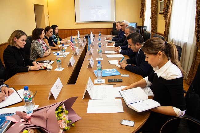 На встрече Директор ЦАРИКЦ Р.Мирализода проинформировал американскую строну о текущей деятельности, достижениях и предлагаемых инициативах Центра, являющегося одним из масштабных проектов УНП ООН.